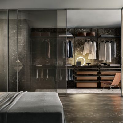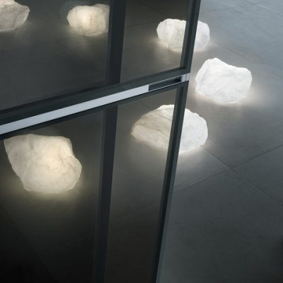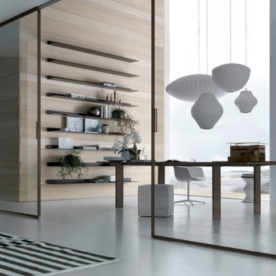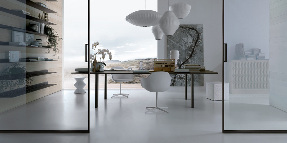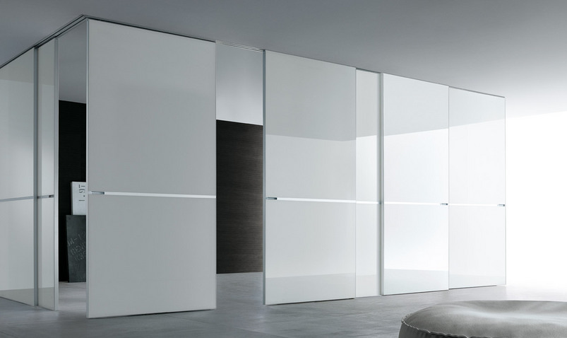 Il sistema di porte scorrevoli che riassume la concezione Rimadesio dell’interior design, con la massima versatilità progettuale, garantita dalla realizzazione sempre su misura, e l’eccezionale gamma di fi niture disponibili, sia per la struttura che per i vetri.