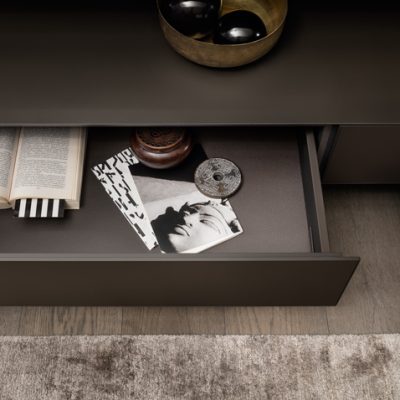 L’ampia scelta di contenitori e accessori dedicati all’area living e all’HiFi consente di formulare soluzioni in linea con le abitudini più contemporanee, caratterizzate dall’estetica del vetro.