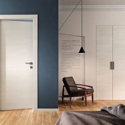 In foto: Porta Filomuro a bilico + Armadio Miria con pannelli intonacati