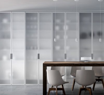 Miria standard vetro ( realizzato in alluminio estruso anodizzato, rivestito in laminato, impiallicciato legno o laccato e vetro spessore 8 mm)