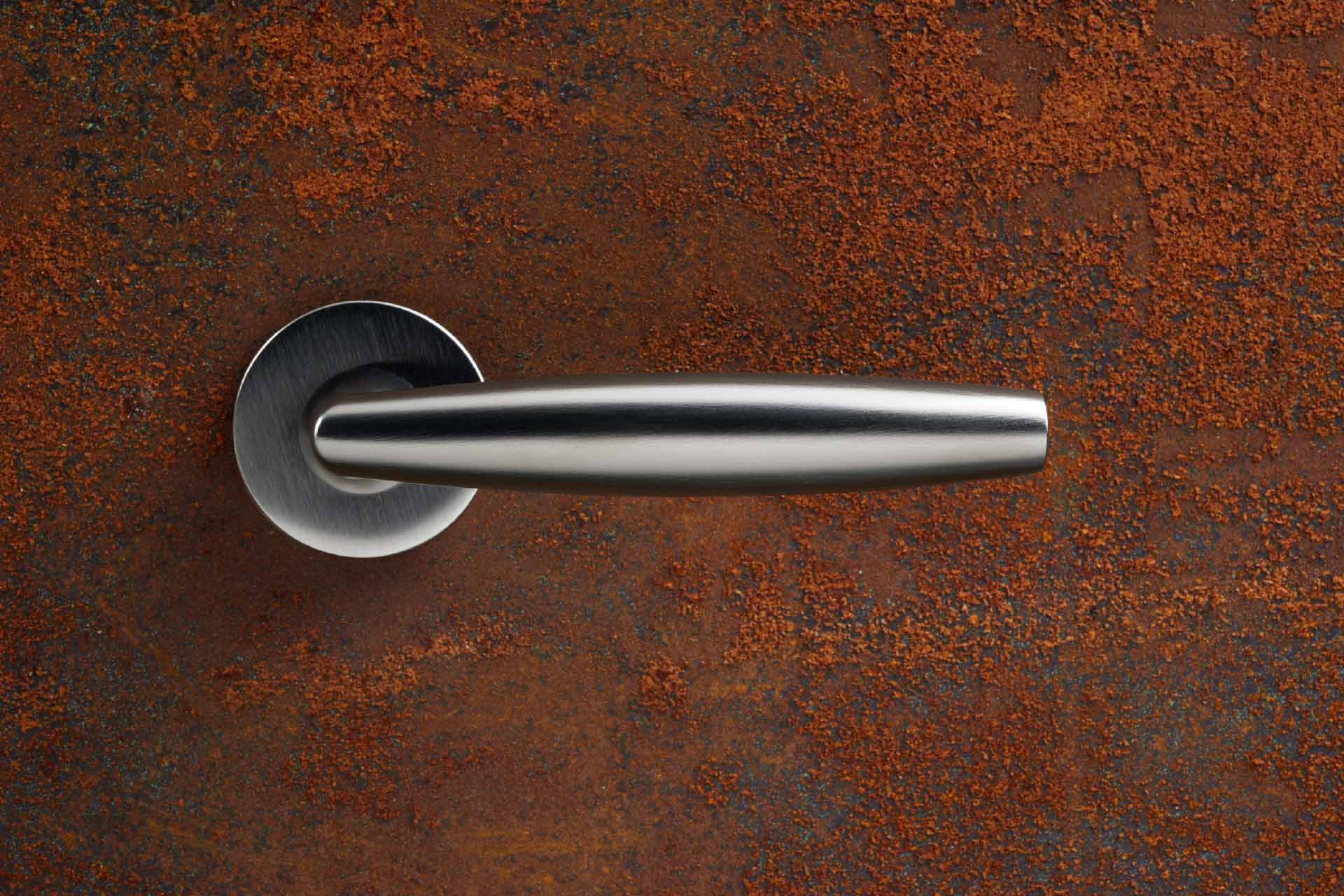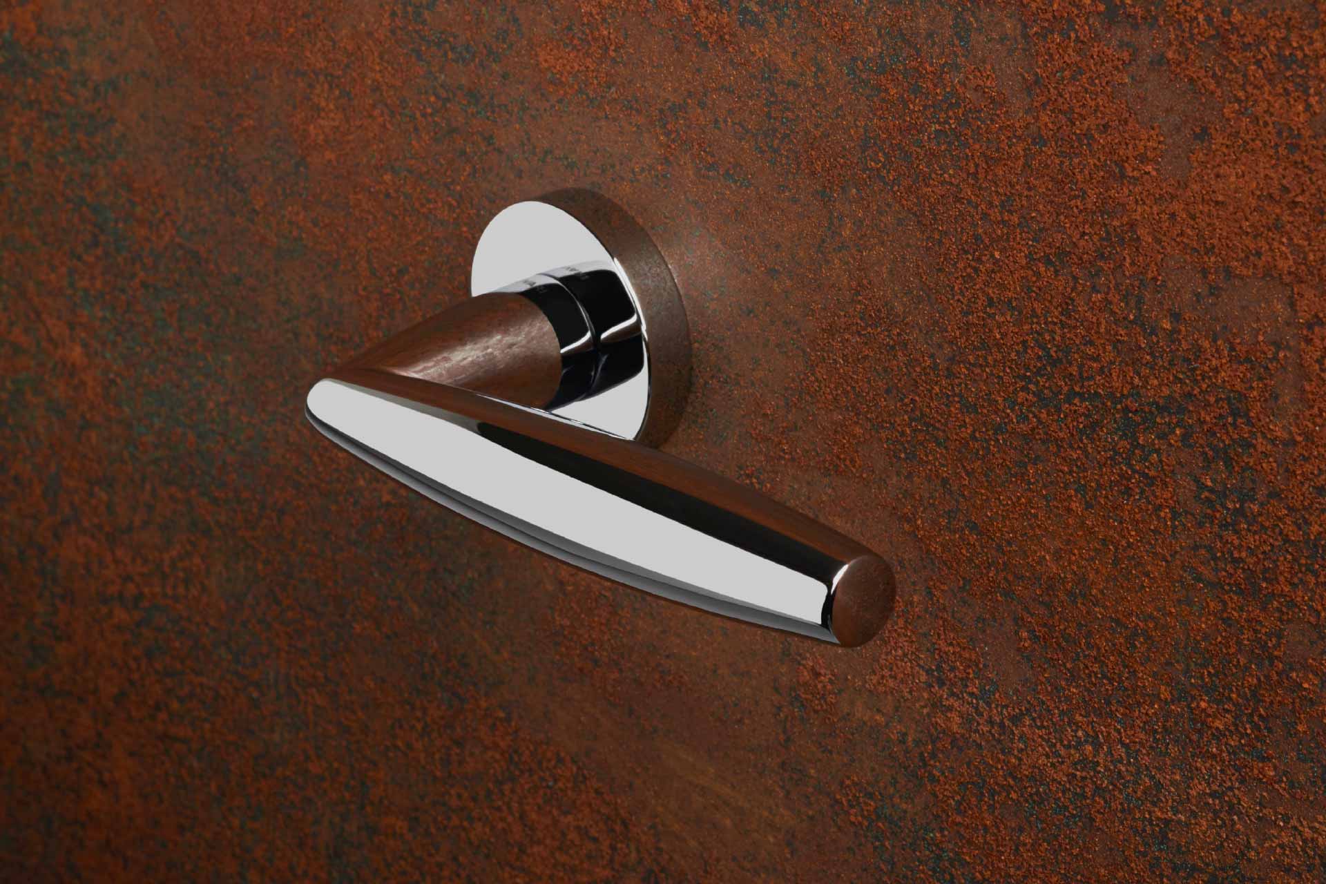 Aurelia è una maniglia a rosetta tonda progettata dallo Studio Olivari, il centro delle attività di ricerca dell’azienda, dedicato allo sviluppo di nuovi materiali e alla progettazione di soluzioni meccaniche innovative.