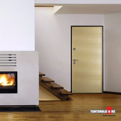 Le elevate prestazioni termoacustiche di questa porta si devono alla coibentazione interna in lana di roccia e al doppio pannello isolante posto sotto il rivestimento esterno.