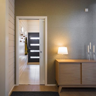 Adatto a tutti gli ambienti della casa, questo sistema permette di alloggiare una porta a scomparsa ad anta singola.