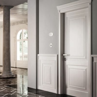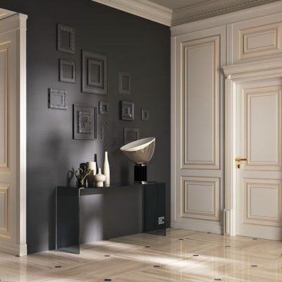 Con la collezione di porte in stile classico Dorè puoi esaltare il fascino della laccatura soft touch integrandola con dettagli in oro o argento.