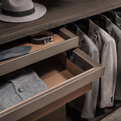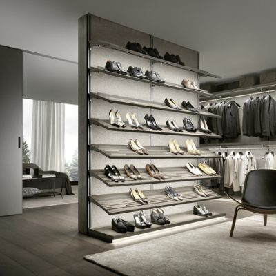 è un sistema per creare cabine armadio personalizzabili al massimo grado, con possibilità di composizioni su misura in soluzioni lineari, ad angolo e a C.