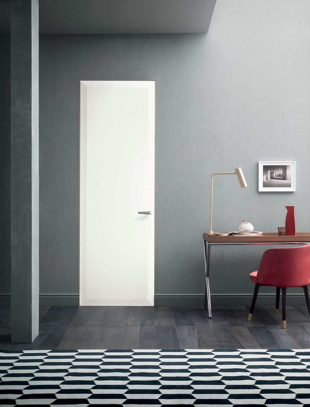 Disponibile in tre versioni, la porta diviene opera, cornice nella cornice, un nuovo volume in un corpo solitamente bidimensionale, che gioca con le luci e le ombre dell’ambiente in cui è inserita.
