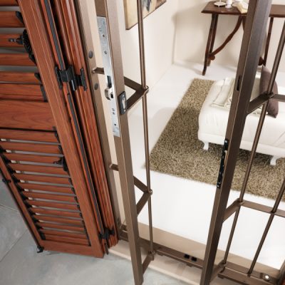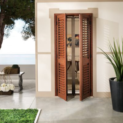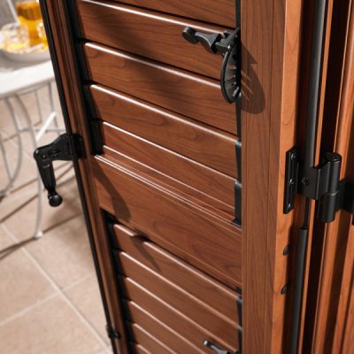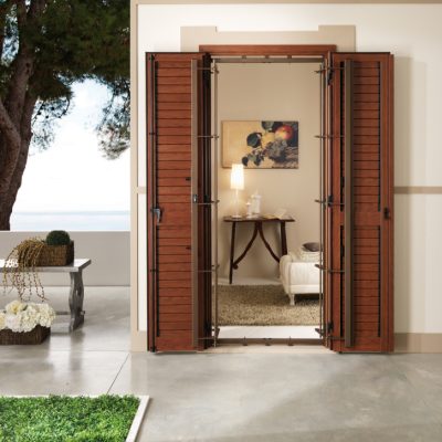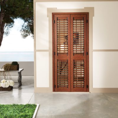 L’anta con profondità 45 è disponibile con lamelle fisse ovali da 50 mm e trapezoidali da 65 mm, entrambi inclinate per consentire una graduata illuminazione e una adeguata aerazione, con lamelle orientabili da 70 mm per decidere in autonomia illuminazione e aerazione, a richiesta con meccanismo in tinta; doga orizzontale o verticale, per un totale oscuramento e sportello alla genovese.