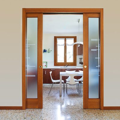Grandi luci e il massimo dell’adattabilità. La versione ad anta doppia di una porta scorrevole regala alla casa aperture molto ampie e, se abbinata a porte in vetro, assicura leggerezza e luminosità.