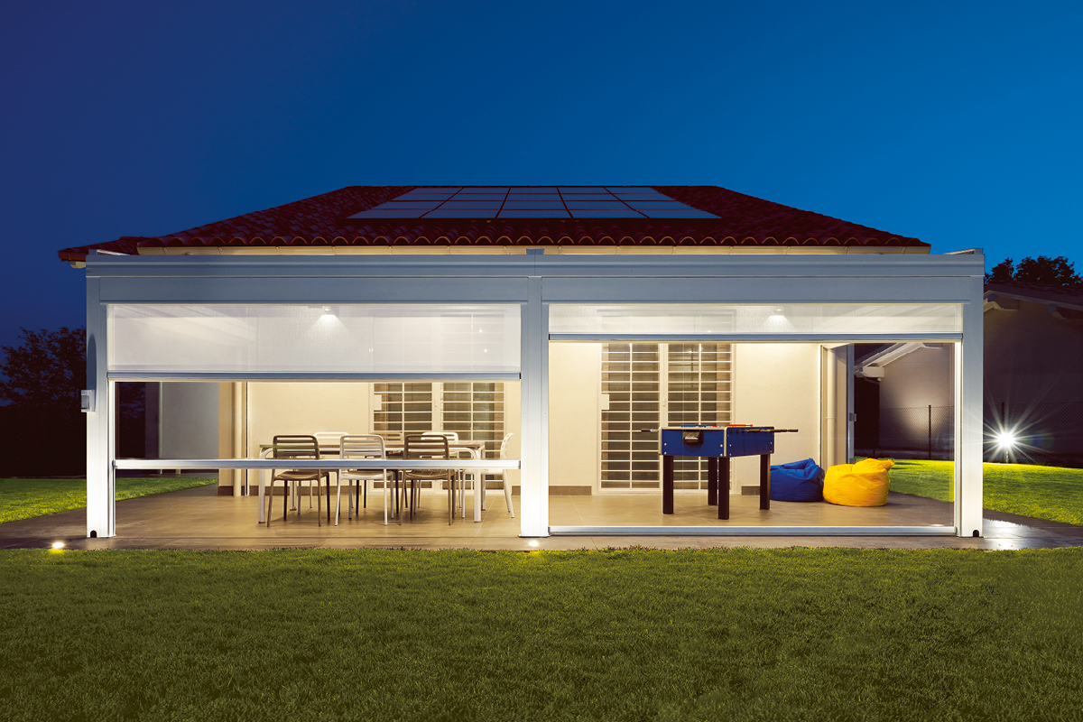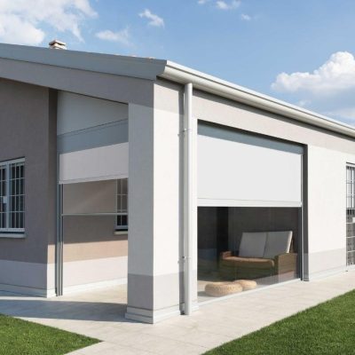 Comando manuale con rinvio esterno (asta snodata non asportabile); comando motorizzato radio o a pulsante per domotica con funzione anti ostacolo (tramite ruota frizionata)
