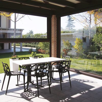 Per la protezione da vento e pioggia garantendo la massima visibilità verso l’esterno.