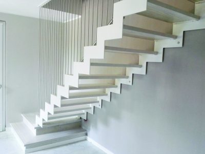 La scala ha staffe di base in partenza a pavimento e alla soletta nel punto di arrivo, ma in base alla conformazione si valutano sostegni supplementari.