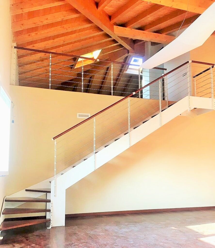La scala è fissata in partenza a pavimento e alla soletta nel punto di arrivo, ma in base alla conformazione si valutano sostegni supplementari.