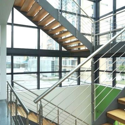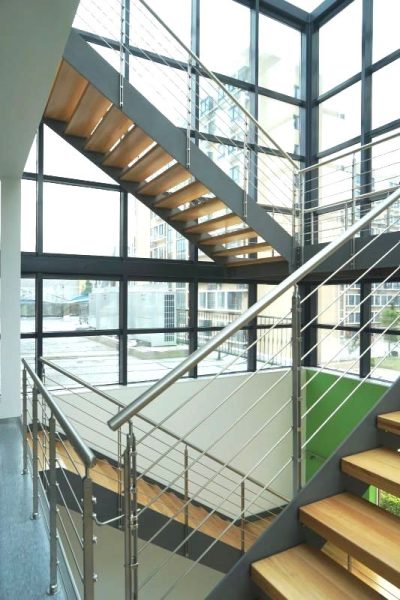 Lo stile di Link Linear è giovane e moderno. La scala si presenta con strutture laterali dritte realizzate con lamiera tagliata al laser e gradini fissati alla struttura da apposite staffe interne.