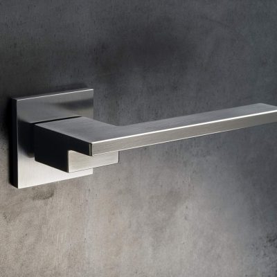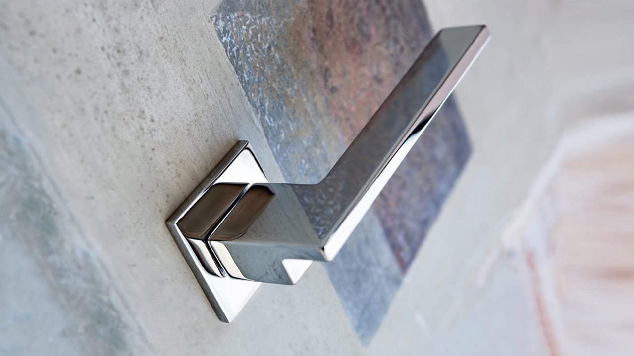 L’essenzialità di Living si rivela nella compenetrazione di forme elementari riconducibile alle due componenti della maniglia: la parte orizzontale propriamente detta, destinata alla presa, e l’innesto del volume sottostante, adibito a collegamento con il piano della porta e funzionante da asse di rotazione.