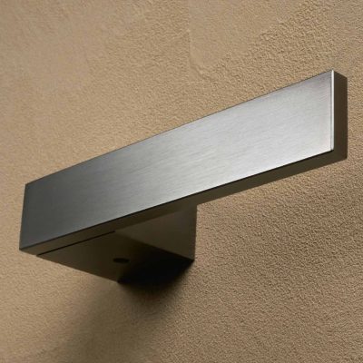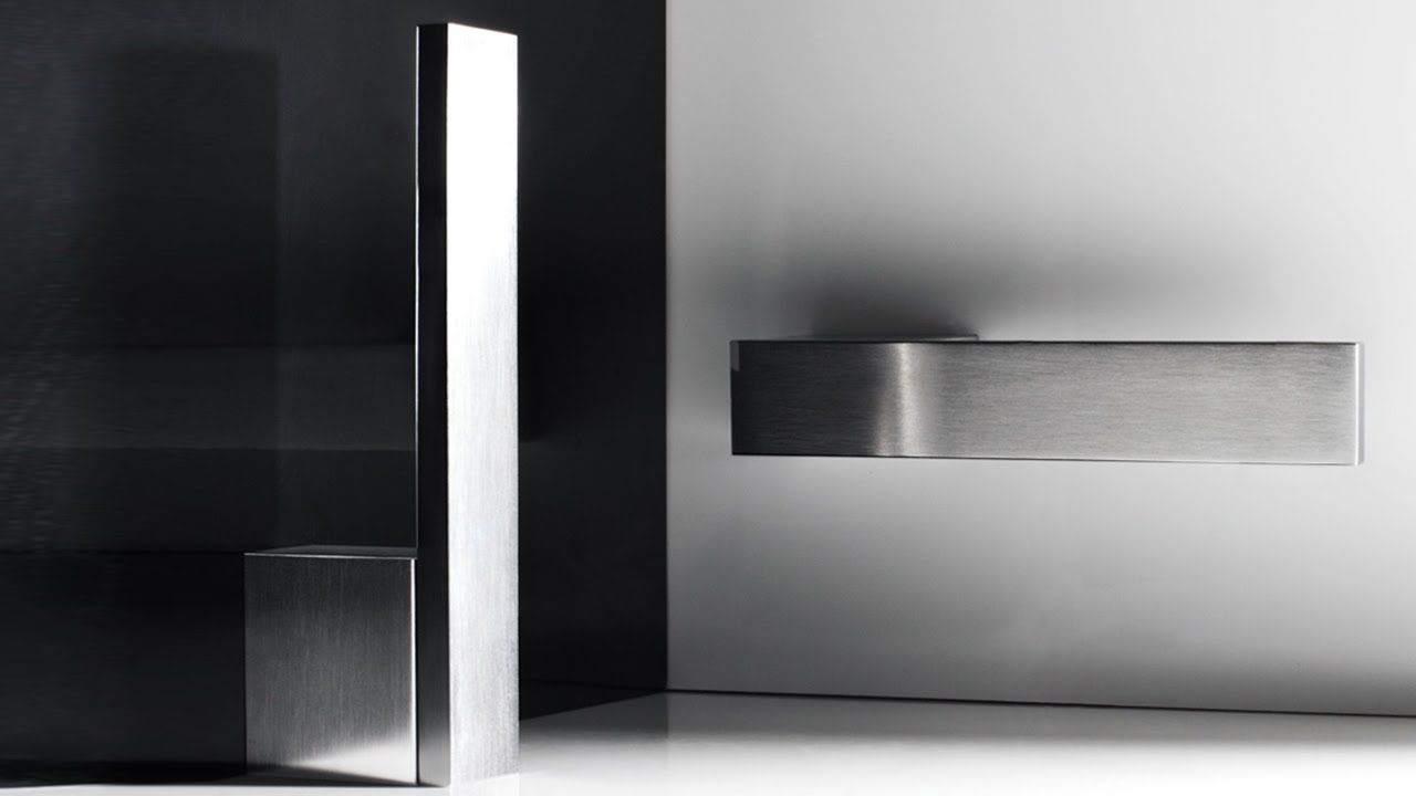 La soluzione tecnica meccanica risolta all’interno di un unico blocco ha, infatti, permesso l’integrazione della classica rosetta in modo che il solido di raccordo tra leva e porta diventasse un tutt’uno. La leva, invece, è un semplice parallelepipedo sottile ricavato da un nastro.