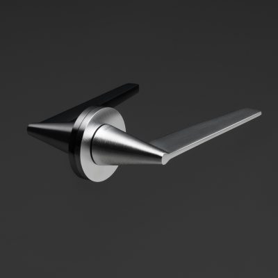 Il profilo della Cono riproduceva plasticamente il diagramma delle forze esercitate sulla maniglia e riduceva al minimo l’utilizzo del materiale; la sua caratteristica principale era quella di avere la forma della rosetta su cui ruota la maniglia in continuità con quella del mozzo: un corpo esteticamente unico, che richiedeva una particolare perizia nell’installazione da parte del falegname.