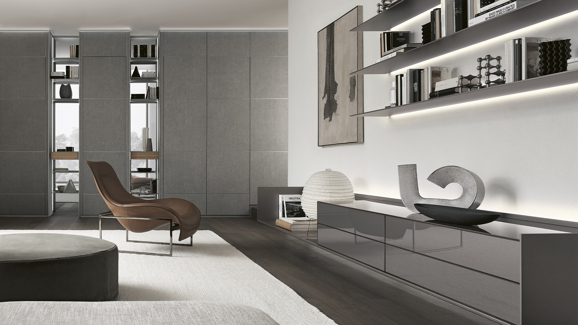 Sempre su misura, adattabile ad ogni situazione architettonica, Modulor permette di creare geometrie ordinate o composte, di posizionare in libertà mensole, contenitori o vetrine, di scegliere tra un’ampia varietà di materiali e finiture esclusive.