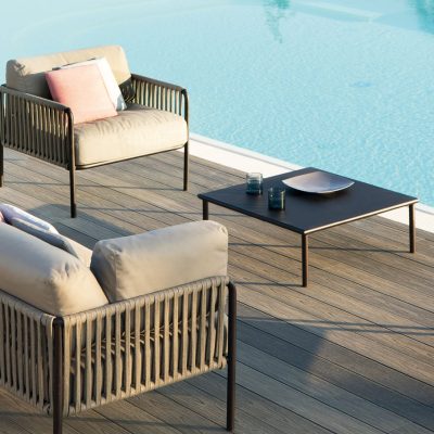 La fusione di materiali sempre nuovi e diversi come corda, legno, ceramica, acciaio e alluminio trova equilibrio in elementi per l’outdoor originali e unici.