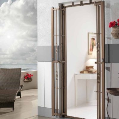 Le ante sono realizzate con profili di acciaio zincato di sezione che varia da40x30x2 mm di spessore a 30x30x2 mm di spessore. I moduli ornamentali sono costituiti da barre piene di acciaio zincato del diametro del 14 mm. La linea “PERFEKTA” è disponibile fissa, ad una, due, tre e quattro ante.