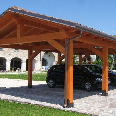 Barchessa struttura modulare con tetto a doppia pendenza in pino lamellare impregnato in autoclave.