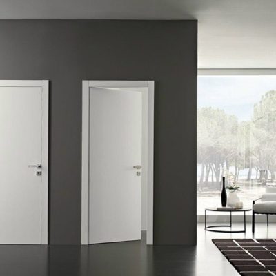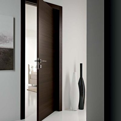 Una linea di porte in legno raffinata e minimale, con linee pulite grazie ante e cornici complanari e a filo muro.