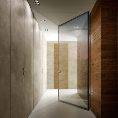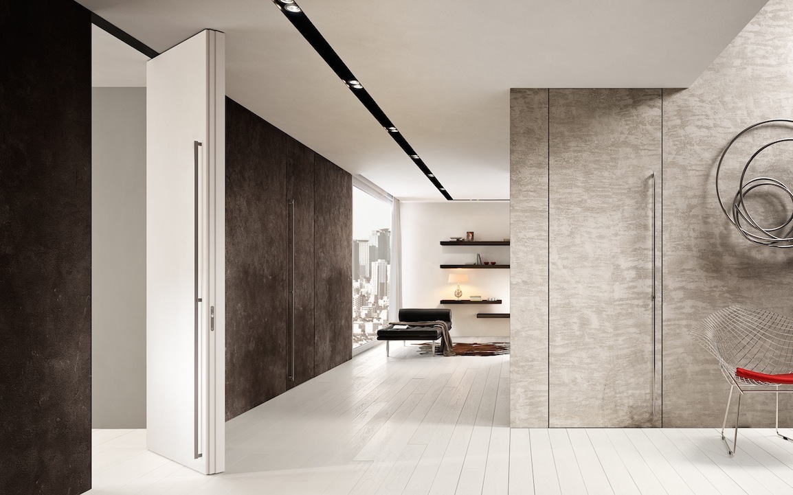 Le porte con meccanismo pivotante possono essere realizzate in diversi materiali, dal vetro al legno passando per il laminato, e questo le rende adattabili per progetti di diversa natura e differenti stili.
