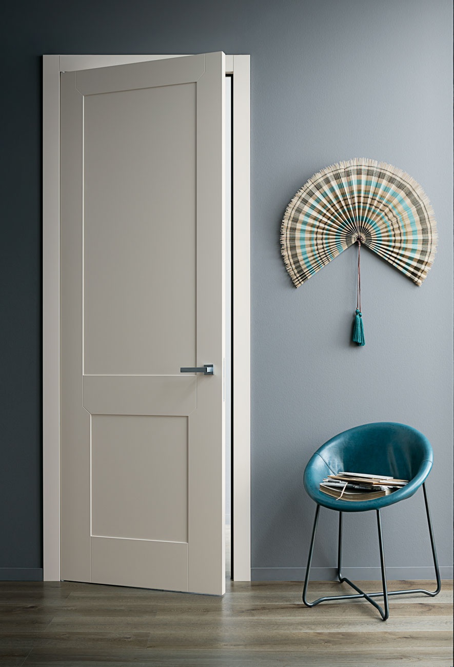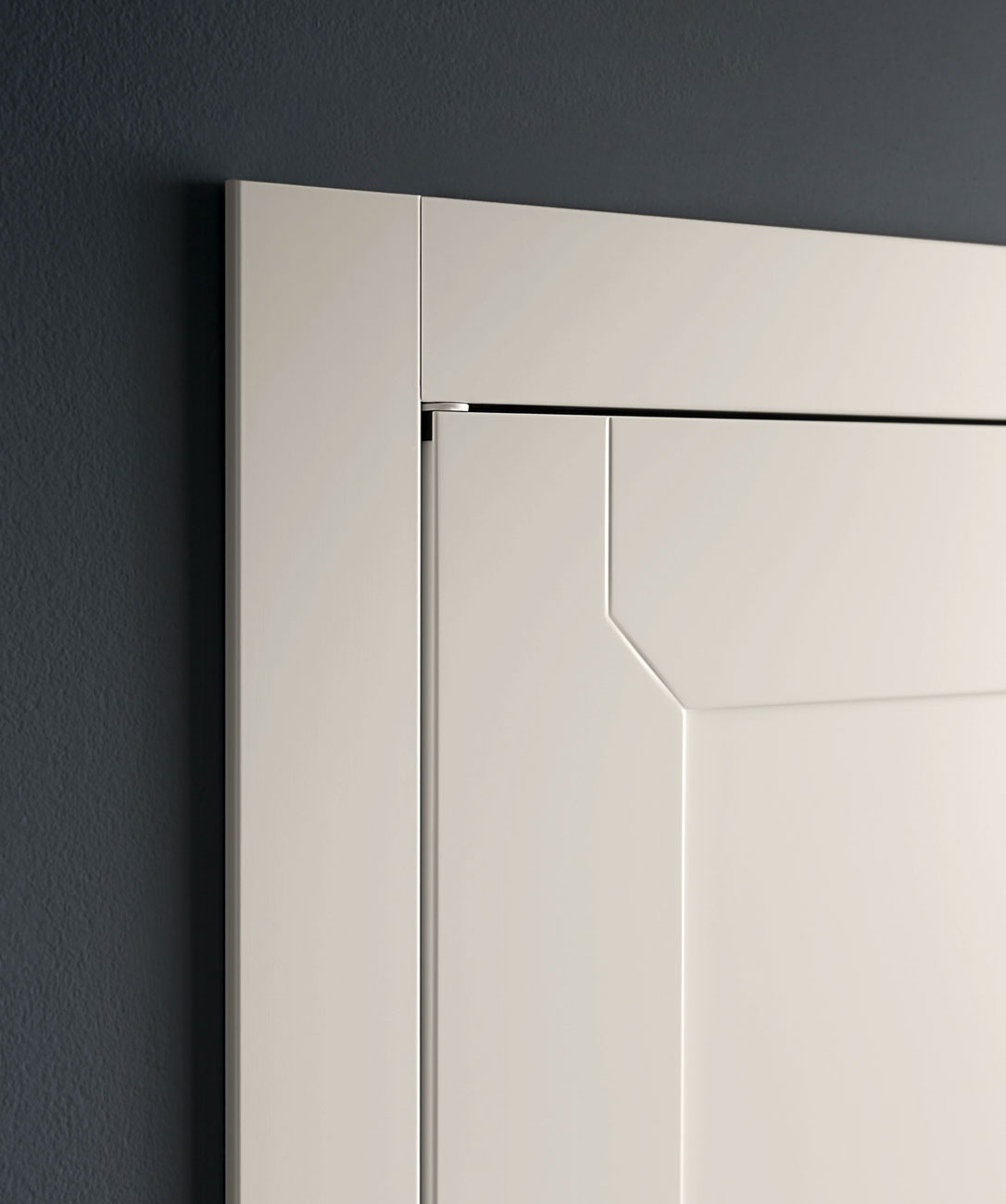Alla base del disegno l’attento studio delle proporzioni tra la parte inferiore e superiore della porta, il tutto per introdurre un effetto visivo originale, ma di grande eleganza e misura.