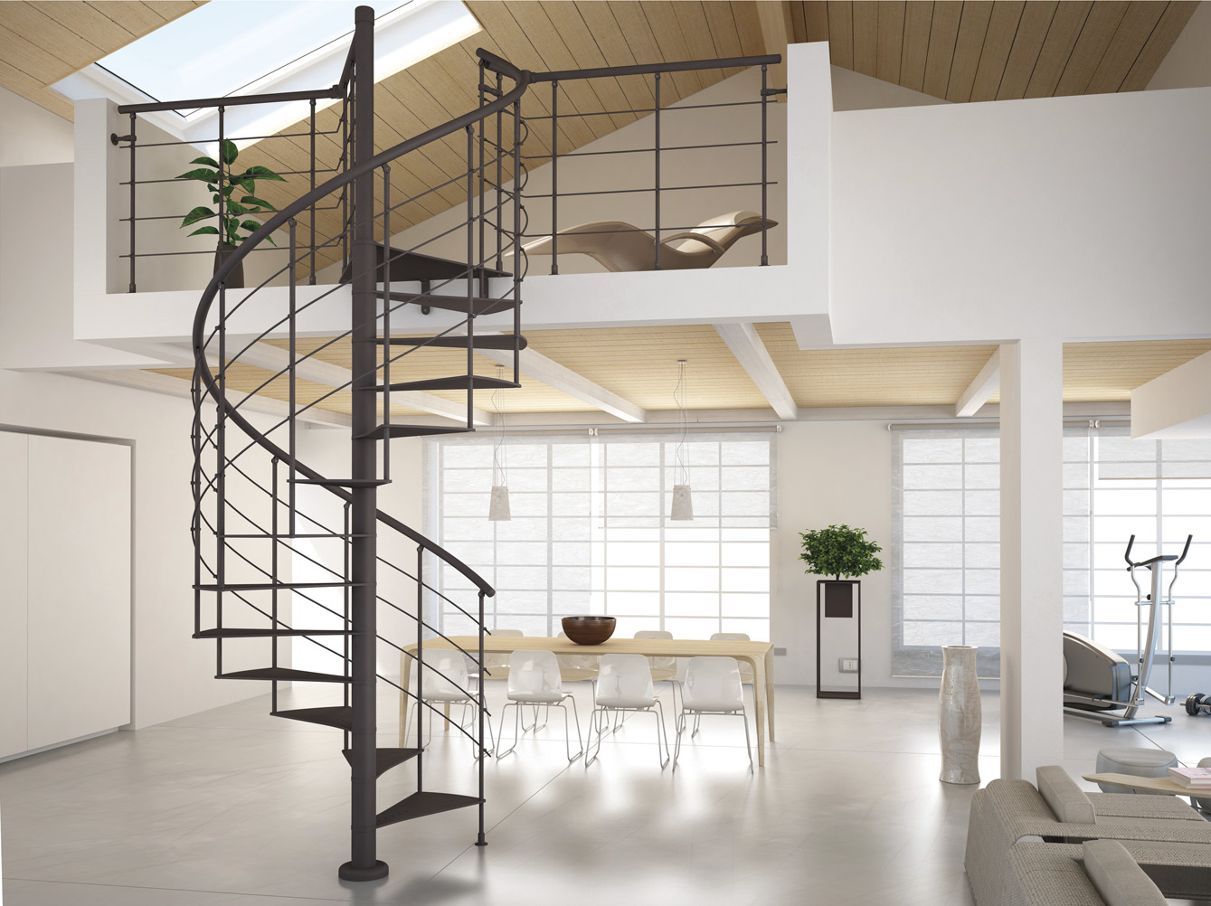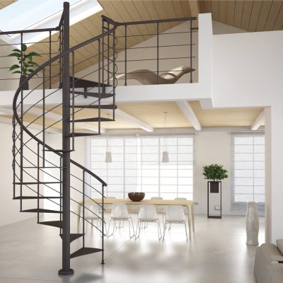 La scala a chiocciola in ferro appartenente alla collezione Elegance di Cast Scale, scala conveniente e che arreda con stile.