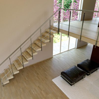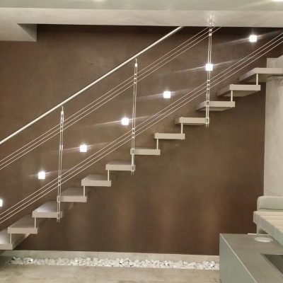 Si presenta con gradini a sbalzo fissati direttamente nel muro, disponibile anche nelle versioni con struttura laterale di sostegno in ferro verniciato o acciaio inox.