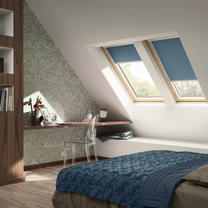 Le tende a rullo oscuranti VELUX sono progettate per garantire oscuramento totale negli ambienti sottotetto, creando il buio ideale per il riposo in qualsiasi momento della giornata.
