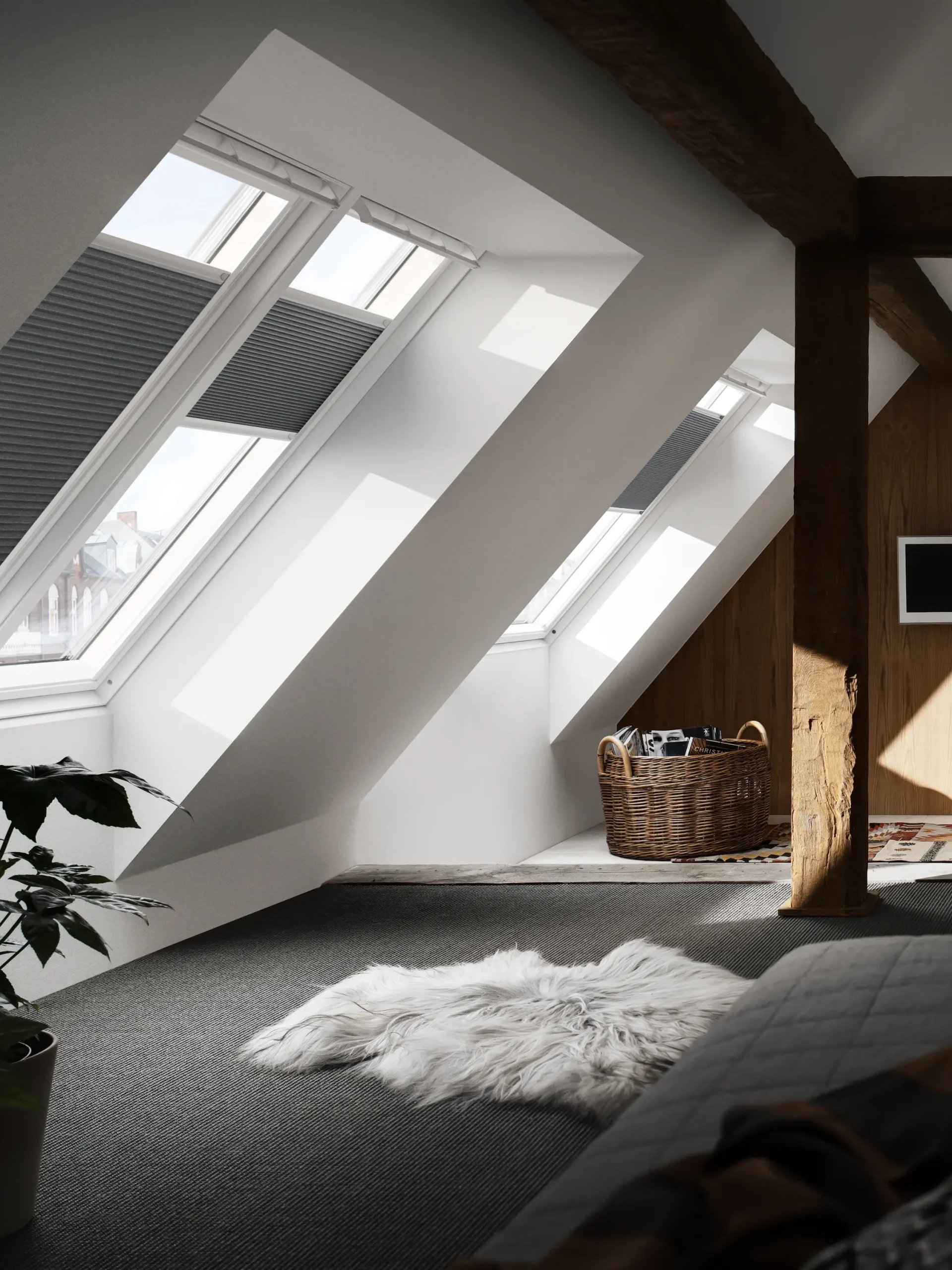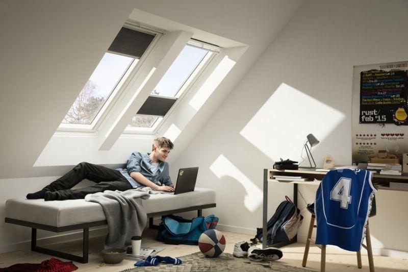 La tenda plissettata oscurante VELUX unisce oscuramento e isolamento termico grazie alla struttura a nido d’ape, garantendo comfort e risparmio energetico in ogni stagione.