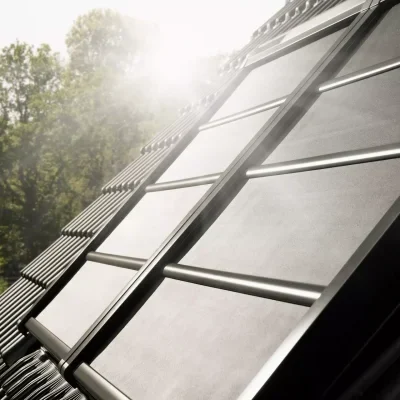 L’abbinamento proteggi e oscura VELUX è composto da una tenda oscurante a rullo interna e una tenda parasole esterna. Permette di ottenere oscuramento totale in qualsiasi momento e protegge dal calore estivo. L’acquisto della tenda proteggi e oscura VELUX conviene rispetto all’acquisto separato delle due tende.