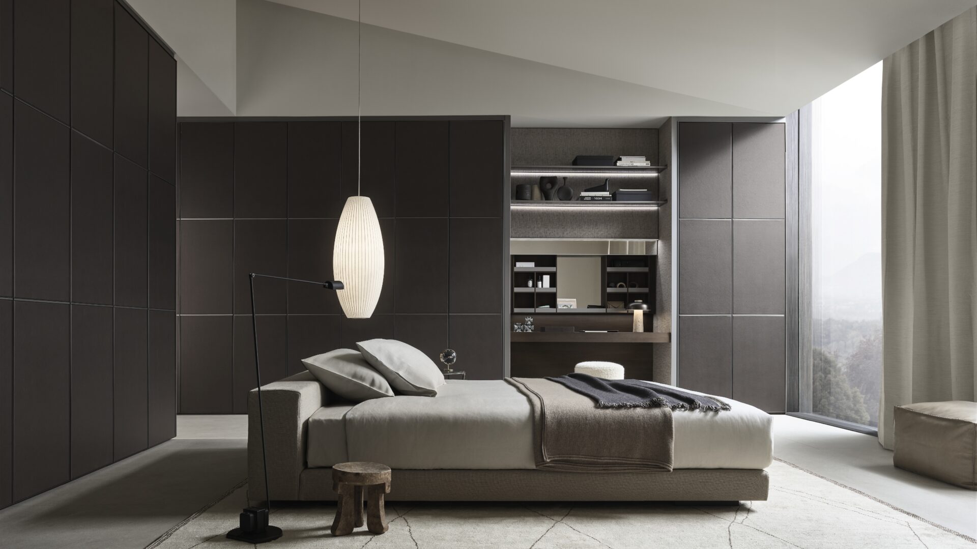 Vanity è appositamente studiato per integrarsi con i sistemi armadio della collezione Rimadesio grazie a una realizzazione sempre su misura in altezza e profondità.